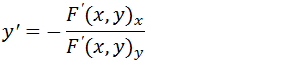 Seja a função implícita F(x,y) então a sua deriva pode ser calculada com base na formula;