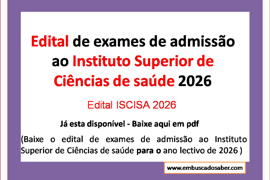 🩺 Edital de Exames de Admissão ao ISCISA 2026 — Candidaturas, Vagas e Prazos O Edital de Exames de A…
