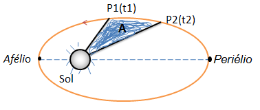 Na figura acima, vemos que um planeta desloca-se da posição P1 até P2 em um intervalo de tempo, Considere A a área percorrida nesse intervalo de tempo. Essa lei é dada pela fórmula: