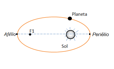 Os planetas descrevem órbitas elípticas em seu movimento em torno do Sol, sendo um dos focos ocupado pelo Sol. A distância entre os planetas até o Sol é variável. O ponto da trajectória mais próximo do Sol chama-se Periélio; e o ponto mais distante, Afélio.